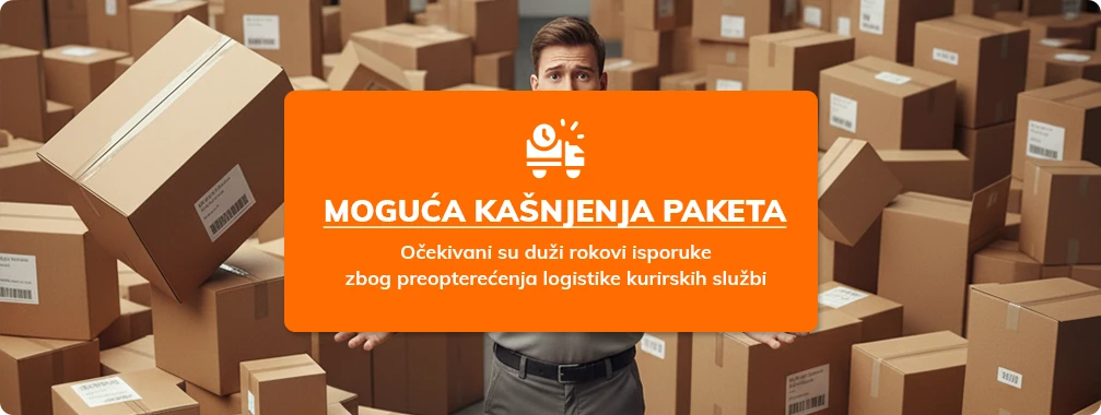 Molimo vas za strpljenje - zbog preopterećene logistike kurirskih službi može doći do prolongiranja istaknutih rokova isporuke, što znači da postoji mogućnost da ćete na svoje pakete čekati duže nego obično.